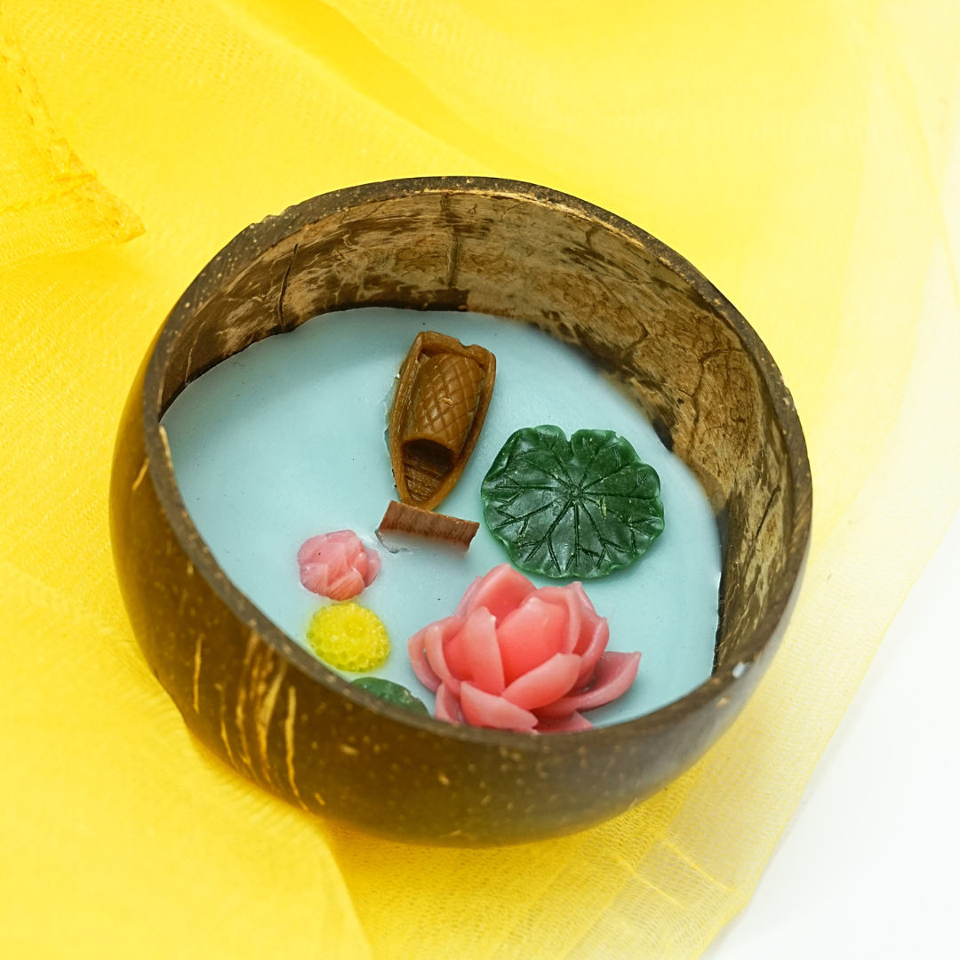 Set sail into serenity with our Coconut Love, elegantly crafted in a natural coconut shell. This candle captures the essence of calm waters and gentle light. Each piece is thoughtfully handcrafted to add warmth, beauty, and a touch of tradition to your décor. Perfect for festive displays, gifting, or creating a peaceful ambience at home