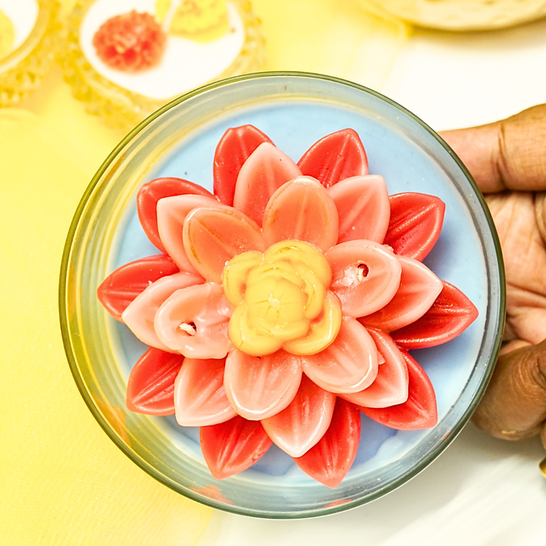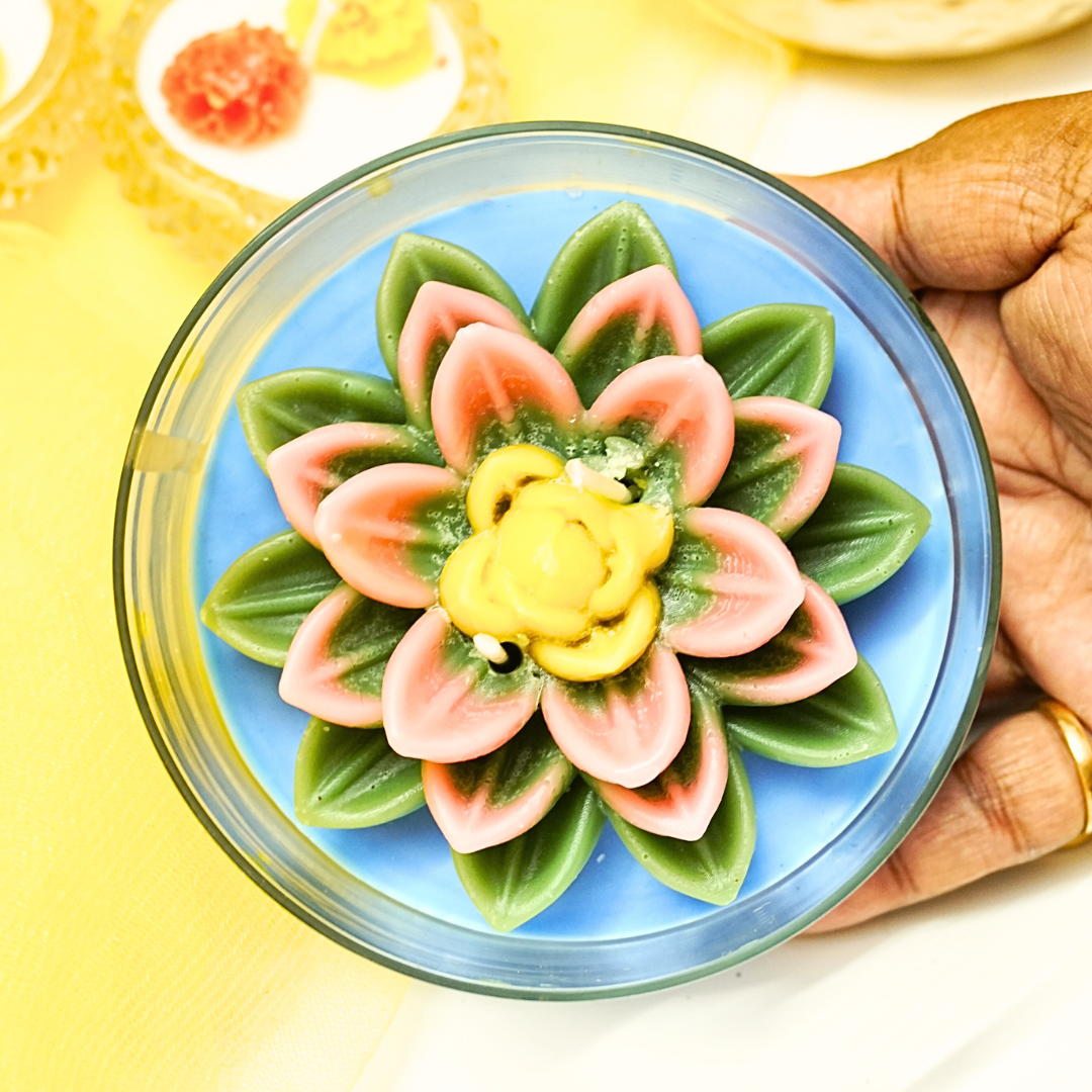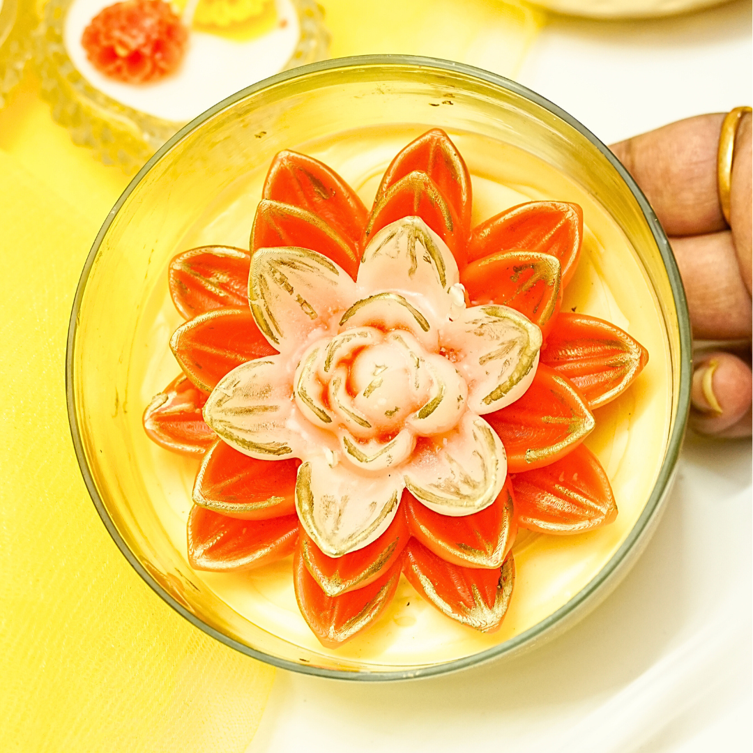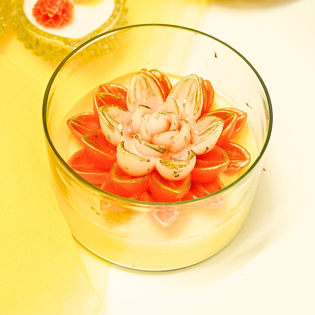 Bring serenity and beauty to your space with our Lotus Pond Candle, set in a premium glass circular jar. Inspired by the calm elegance of lotus blooms, each candle is handcrafted to reflect peace, purity, and timeless design. Perfect for home décor, gifting, or festive occasions, it fills your surroundings with a soothing glow and graceful charm.