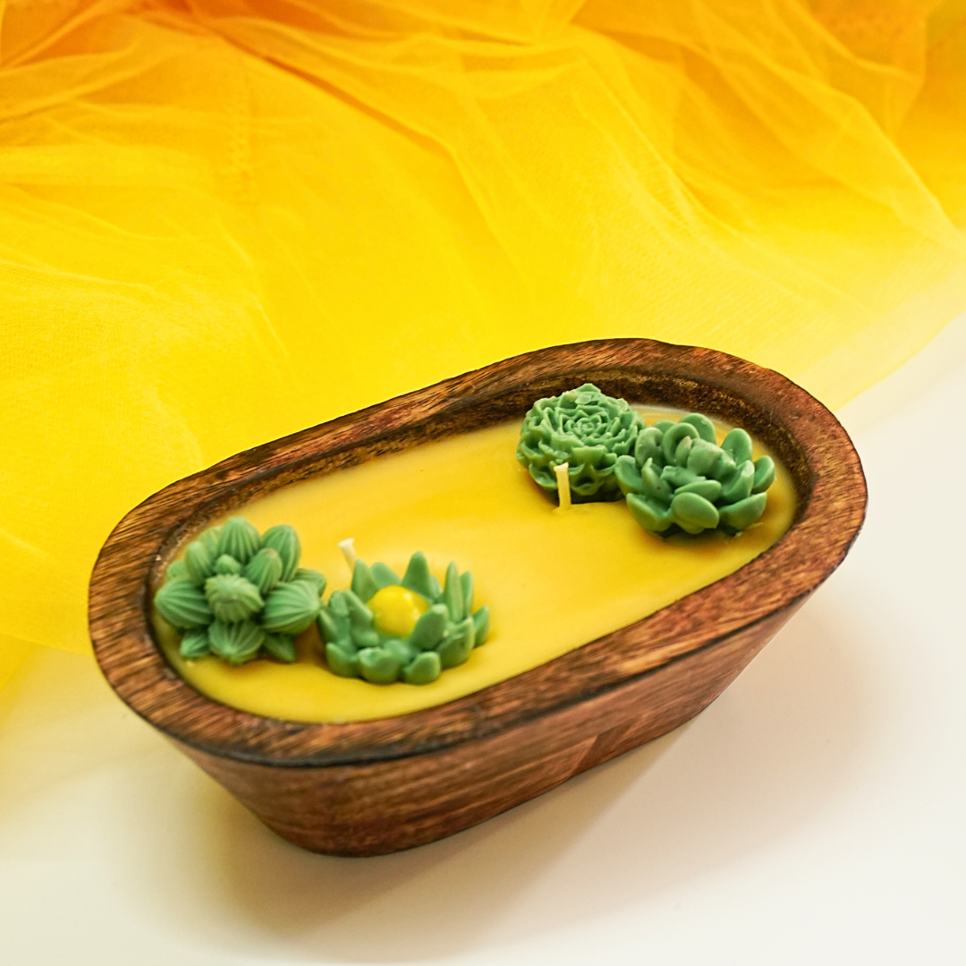 Set sail into serenity with our Succulent Beauty Candle, elegantly crafted in a natural wooden container. Inspired by floating lotus blooms, this candle captures the essence of calm waters and gentle light. Each piece is thoughtfully handcrafted to add warmth, beauty, and a touch of tradition to your décor. Perfect for festive displays, gifting, or creating a peaceful ambience at home.